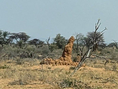 Hin und wieder wird uns beim Überholen von Passagieren freundlich zugewunken. Termitenbauten prägen die flache Landschaft. Hin und wieder sehen wir manchmal große "Qualmwolken" in der Ferne: Die Ursache können aber kaum Feuer sein und nach und nach wird klar, das sind tatsächlich kleine turbulente Sandstürme, kaum zu glauben!