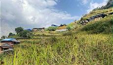 Von hier steigen wir Steinstufe um Steinstufe nach Simigaon auf. Wir, das sind die Bergführerin Jangmu Sherpa, die Fotografin Regina Koritkowski und ich. Blumen schmücken die traditionell aus Querbalken und Felsbrocken erdbebenrobust gebauten Häuser. Kartoffeln, Karotten, Zwiebeln pflanzen die Menschen auf Terrassenfeldern an. Weizen säen sie im Herbst, erzählt unsere Wirtin, eine lebensfrohe Frau mit bunt gewebtem Schurz und großer silberner Schnalle. Zum Abendessen kocht sie Polenta aus fein gemahlener Hirse, eine würzige Tomatensauce und dünstet Spinat in der Pfanne an.