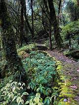 Durch immergrünen Mischwald geht es weiter nach oben: Eine mystisch anmutende Waldwelt folgt, alles ist moosbewachsen: Baumstämme, Äste, Zweige, Felsen, Boden, in hunderten Grüntönen. Vereinzelt leuchten darin rote und gelbe Laubmoose. Auf 2.800 Metern Höhe übernachten wir im Zelt. Das Gästehaus mit über einhundert Betten, das hier in Dongang gestanden hatte, rissen Wassermassen Anfang August weg, während des Monsuns. Eine ältere, alleinstehende Frau, die dort schlief, starb. Sie hatte ihren Lebensunterhalt damit verdient, außerhalb der Wandersaison auf das Anwesen aufzupassen ...