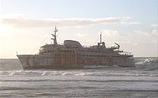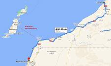 Nun liegt der Hafen brach bis auf einige Fischerboote, die Fähre ist bereits 2008 bei Sturm vor der Küste Tarfayas auf Grund gelaufen. Im Jahr 2019 bin ich dorthin geschwommen und draufgeklettert, sogar die Fahrzeuge auf dem Autodeck stehen dort noch rostig und zerbeult. Erinnerungen werden hier wach an das viel berühmtere Wrack vor der Westküste der nahen Insel Fuerteventura: Die Geschichte der American Star ...