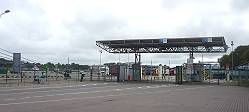Vom Camp zum nahen Fähren Check-In sollte es kein Problem sein: Einmal die Straße lang und fast da. Der Campingplatz leert sich, auch wir beschließen, loszufahren und sind kurz darauf am Check-In - oder zumindest an der Stelle, die wir für ein übliches Check-In halten. Aber weit gefehlt: Die bärbeißige Gestalt an dieser Sperre, die nun schon eher einer Zonengrenze zu entsprechen scheint, macht uns schnell klar, dass man hier nicht wie üblich ganz einfach Ticket vorlegen und durch kann - man müsse schließlich zuerst zum Check-In Gebäude und dort alles regeln.