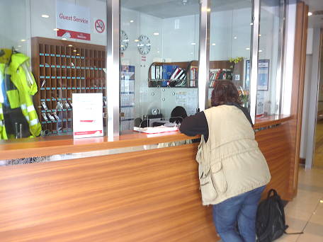 Kabine einzuchecken: Zwar sitzt dort noch eine Dame, aber die reagiert