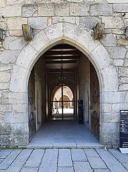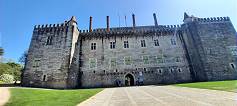 Um 1640 kam eine andere Familie auf den Thron des Königreiches: Die Familie Braganca, die sich dort bis zur Auflösung des Königreiches im Jahre 1910 hielt, als Portugal eine Republik wurde. Die Familie ließ auch dieses Gebäude bauen, den Palast der Herzoge von Braganca. Mit den ziemlich wuchtigen Seitentürmen erinnert der Anblick eher an eine schlicht geplante Burg, die dann aber doch eher ein Palast werden sollte. Es war der Baustil französischer Herrschaftshäuser. Dann gehe ich dort einmal hinein ...