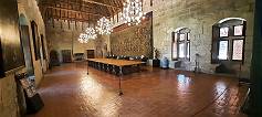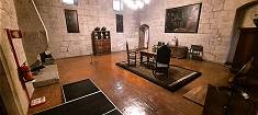 So sieht nun der ehemalige Palast der Familie Braganca von innen aus: Die sehr massive Bauweise ist leicht zu erkennen. Natursteine gab und gibt es in Portugal ausreichend. Hier fallen mir zum ersten Mal die dicken Unterlagen auf, die unter den Möbeln oder auch nur so im Raum zu finden sind. Es handelt sich dabei wohl um eine Art Teppiche.