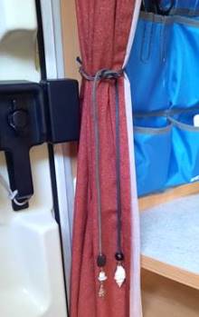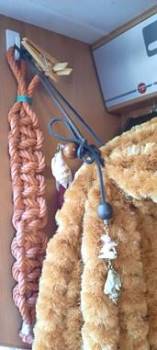 Und das sollte wirklich nicht das Problem sein, inzwischen ist es im LERRY nämlich sehr gemütlich geworden: Eine richtig gute portugiesische Künstlerin aus dem Ort Praia da Vieira hat für die Gardinen und den Vorhang des LERRYmobils sehr schöne Haltebänder geschaffen.