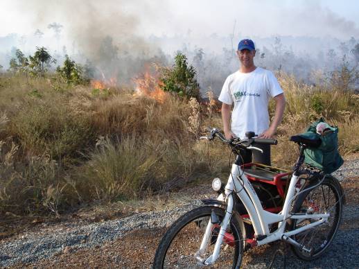 Wenn ich alles genauso durchhalte, wie ich es mir vorgenommen habe, sind es ungefähr 80-90 km am Tag, also durchaus ambitioniert. Es gibt keine allzu großen Steigungen, außer im Norden von Laos ist es relativ flach. Aber ich weiß natürlich nicht, wie die Straßen sind und die Beschilderung. Ich habe zwar ziemlich gute Karten, aber es gibt einige Unwägbarkeiten. Wenn es aber hart auf hart kommt und ich irgendwo im Dschungel stecken bleibe, gibt es mehrere Möglichkeiten, ein bisschen abzukürzen.