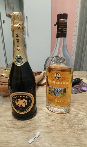 André, ein Bekannter von Bruno in Liepaja, kam abends in meinem Hotel vorbei, um ein Buch abzuholen, das ich für ihn mitgenommen hatte. Dann entschieden wir uns, gemeinsam etwas zu trinken, ich hatte noch etwas Cognac auf dem Tisch, er informierte seine Frau, dass er das Auto stehen lassen und später mit Metro oder Bus zurückkommen würde. Da der Rest Cognac nicht genug war, kauften wir noch eine Flasche in der Nähe bei einem Magazin ...
