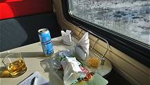 Essen liegt ebenso bei um die fünf bis sieben Euro, tja - früher war das Trinken von harten alkoholischen Getränken verboten, heute alles Alkoholische, aber es gibt Ausnahmen. Der eine Mann trinkt Cognac die ganze Zeit aus mehreren kleinen Flaschen, er bietet mir auch was an, aber aufgrund meiner vorangegangenen Katharsis lehne ich mit dem Hinweis darauf dankend ab. Ich trinke zuerst ein Bier im Restaurant, dann eines bei der Pause auf dem Bahnsteig. Die Schaffnerin meint, ja, aber aufpassen wegen der Miliz, und nach ein paar Minuten kommen drei Polizisten vorbei, schauen skeptisch auf meine Dose in der Hand, aber dann meint die Schaffnerin, das ist in Ordnung, ich wäre Deutscher und als Tourist zu Besuch. Später habe ich noch zwei Dosen Bier im Gepäck, das ich dann auch unbescholten im Zug trinke ...