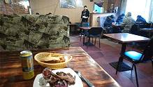 Dort gab es auch Baran Schaschlik, was Schaschlik vom Lamm heißt: Ich sagte zu dem Aserbaidschaner, habt ihr auch Bier? Er meinte, nein, haben wir hier nicht, ich sagte, was ist Schaschlik ohne Bier? Er meinte, wenn du gerne Bier zum Schaschlik trinken willst, dann geh doch einfach in den nächsten Laden und kauf dir ein paar Dosen Bier, die kannst du hier auch zum Schaschlik gerne trinken ...
