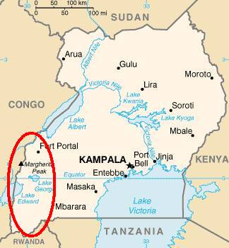 Von Fort Portal aus bieten sich mehrere Tages-Trips an. Wir fahren an einem Morgen in den Semuliki-Nationalpark an der Grenze zum Kongo. Die Passstraße geht auf über tausend Meter herauf und uns umgibt der nördliche Teil des Ruwensori Gebirges. Die höchste Erhebung dieses Gebirges ist der Mount Stanley - mit 5.109 m der dritthöchste Berg Afrikas.
