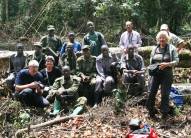 Doch dann kommt auch der Boss "himself" und seine rund 11 Familienmitglieder: Er schaut ziemlich grimmig drein, ist ca. 40 Jahre alt und wiegt gut 250 Kilo. Er lässt sich in unmittelbarer Nähe von uns nieder und beginnt in aller Ruhe seine Früchte zu verspeisen, aber nie ohne seine Familie aus den Augen zu lassen. Den ganzen Clan sehen wir nur sporadisch, da sie meistens vom dichten Dschungel verdeckt sind.