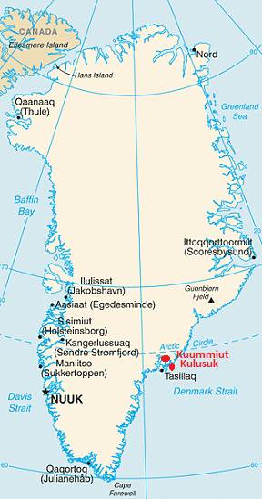 Der erste Eindruck, Grönland von Oben zu sehen, ist unvergesslich: Langsam kommen die riesigen Berge näher, langsam gerinnt der Ozean zu endlosem Weiß, wie das Blut in meinen Adern. Nebel schlängelt sich entlang der Berghänge und unsere Maschine setzt hart auf der kleinen Sandpiste auf. Wir sind nun in Grönland, in Kulusuk, dort wo alles Land endet: Ja, das ist das "Ende der Welt"!