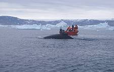 Einige Tage später: Die Boote werden wieder beladen. Wir wollen weiter, nordwärts. Mit hoher Geschwindigkeit rasen wir durch die Fjorde. Die Inuit kennen ihr Land genau, deshalb vertrauen wir ihnen. Irgendwo verspüren wir Abenteuergeist. Das ganze hat etwas von einer Expedition.