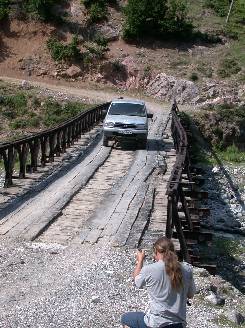 Auch die "Straßen" haben es in sich, auf denen das Team oft nur mühsam voran kommt: Man stelle sich vor, auf einer solchen Hauptstraße mit Pistencharakter den Luftdruck verringern zu müssen, um dann zwischen LKW´s in Richtung Kosovo zu holpern - undenkbar? Nein, hier nicht!