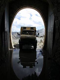 wie das Fahrzeug, und direkt zwischen einem Abgrund auf der einen Seite