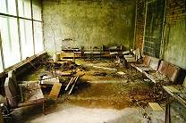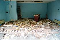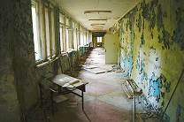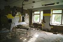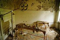 Wir fahren zum ehemaligen Krankenhaus: Hier gibt es Stellen mit enormer Strahlung wegen der vielen verstrahlten Menschen. Langsam gehen wir hinein, blicken in den OP, in Krankenzimmer, schleichen die Flure entlang. Es ist eigentlich verboten, in dieses Gebäude zu gehen. Warum wir dies tun? Ich weiß es nicht. Alle schweigen und schleichen weiter. Der Geigerzähler ist ruhig, kein Alarm. Also muss es doch in Ordnung sein, oder nicht?