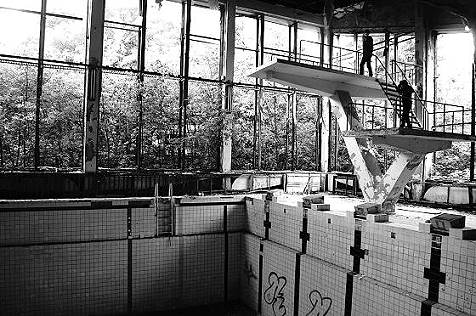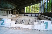 Wir erkunden die Wohnräume: Alles ist verkommen, durcheinander, zerstört und geplündert. Wenig erinnert an die Zeit, als der Mensch hier ein ganz normales Leben führte. Weiter geht´s: Wir schleichen uns in eine Sporthalle und in ein Schwimmbad. Danach in eine alte Schule. Wahnsinn, diese Untergangsstimmung! Wahnsinn, diese Pracht an Pflanzen und Bäumen! Überall kommt die Natur zurück!
