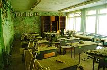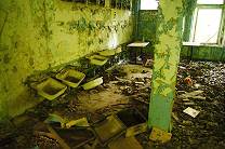 Die alte Schule bringt noch mehr Gruselstimmung auf: Klassenräume, Chemieräume, Pausenhof, Flure. Alles ist wie früher, nur verlassen. Hinter jeder Ecke kann jemand lauern, denke ich. Was für ein Quatsch! Ich halte meine Kamera schon so, als wäre es eine Pistole. Ich drücke ab und fotografiere so viel ich kann. Es ist sicher! Ich werde nur einmal diese Reise unternehmen und deswegen muss ich die Zeit nutzen, so gut ich kann ...