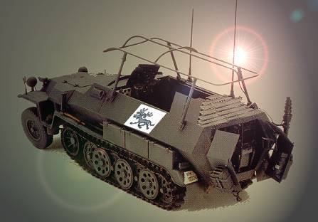 Und so rüstete ich mir schließlich ein günstig erworbenes historisches Sonder-Kfz um: Dies hatte hinten einen Kettenantrieb, war oben offen und erfüllte nach Ausrüstung mit einem Hybridantrieb insgesamt genau die Anforderungen, die ich gestellt hatte. Nun konnte ich mich also an die Innenausstattung machen, und auch die sollte es in sich haben: Nein, ich meine selbstverständlich nicht solche üblichen ollen Kamellen wie Thetford-Porta Potti, Truma-Gasheizung oder Kompressor-Kühlboxen, Wasservorräte, Gelbatterien oder all den anderen gewöhnlichen Plunder, den alle in ihren Womo-Boxen haben.