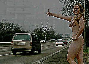 Dennoch aber überkommt mich dann manchmal die Wehmut: Nun, irgendwas scheint doch zu fehlen inzwischen. Ab und zu schrecke ich nachts hoch oder wälze mich herum in meinem Fahrzeug und habe wüste Träume: Sehr oft und eigentlich immer wieder sehe dann spärlich bekleidete Anhalterinnen vor mir, die an der Straße stehen und mitgenommen werden wollen - sind das etwa Wunschträume oder sollte das etwa verdrängtes Verlangen sein? Nun ja, wenn ich wach bin, ist das wieder verflogen, aber irgendwie hält sich oft stundenlang die Erinnerung daran, insbesondere dann, wenn ich wieder über einsame Küstenstraßen donnere oder auch wenn ich nur durch die Vororte rolle, immer mit dem Blick nach rechts und links ...