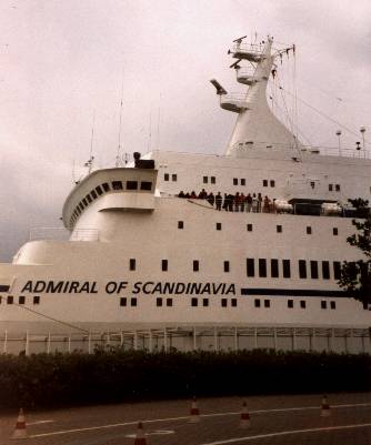 Der "Admiral" erscheint zwar ähnlich groß wie die "Norröna" nach Island 97, aber die Fahrzeuge haben hier mehr Platz unter Deck und alle Insassen dürfen (im Auto sitzend) mit an Bord - welch ein Komfort!