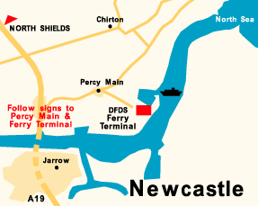 England vor uns: Als wir draußen vor der schmalen Hafeneinfahrt von Newcastle halten, weil ein anderer Passagier-Kahn noch vor uns einfahren darf, ergreift eine merkwürdige Stimmung den Berichterstatter. Ein düsterer Ort mit unzähligen geduckten, typisch englischen Häusern ist hinter der Küste zu erkennen - auch die Burgruine in Hafennähe scheint nur die finster unsympathische Stimmung zu verstärken und düstere Vorahnungen heraufzubeschwören, die nun greifbar wirken, bevor wir das Deck verlassen und mit unserem "Schiffsgepäck" in Richtung Autodeck verschwinden ...