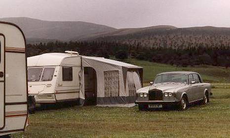 Auf unser Fragen, ob man hier eventuell eine Nacht verbringen dürfe, verweist uns ein freundliches Mitglied zwar an die Rallye-Leitung, aber die bleibt hart: Wir gehören nicht zum Clan und werden freundlich auf den nächsten Campingplatz hingewiesen - nach Braemar! So bleiben wir auch hier nicht, schließlich haben wir keinen Rolls Royce als Wohnwagen-Zugmaschine wie die Camp-Leitung!