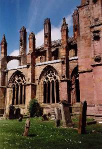 Weiter geht´s die A68 Richtung Norden bis Galashiels zum Melrose Abbey (N55°35.85´ W002°43.04´). Die Ruinen der aus rotem Sandstein erbauten gotische Zisterzienserabtei halten jeden Vergleich mit ähnlichen Gebäuden aus Irland aus. Ein historisch gekleideter Mensch rezitiert in den Gemäuern, die (völlig unmilitärisch) in einem weiten Talkessel angelegt sind, der zumindest Windschutz geboten haben muss ...