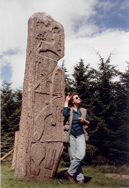 Die wichtigsten Überbleibsel ihrer Kultur sind die Symbolsteine, die z.T. immer noch an ihren ursprünglichen Orten stehen und viele Fragen offen lassen. Ob diese Symbole nun Grenzen kennzeichnen, Abstammungen, Bündnisse oder Machtverhältnisse der Pikten, weiß heute letztlich keiner so genau - unser erstes Ziel, der "Maiden Stone" (N57°18.73´ W002°29.62´) zeigt aber auf jeden Fall einen Kamm und einen Spiegel, das können wir bezeugen!