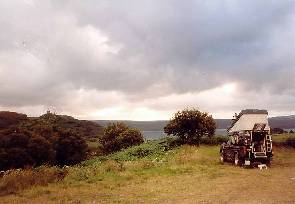 Und in der Tat, ein sehr schöner, urwüchsiger Campingplatz erwartet uns an einer der nördlichsten Buchten Schottlands - wir sind an der Nordküste angelangt! Der Platz am Kyle of Tongue (N58°28.38´ W004°25.05´) in Sichtweite der berühmten Castle-Ruine ist der echte Höhepunkt an diesem Abend.