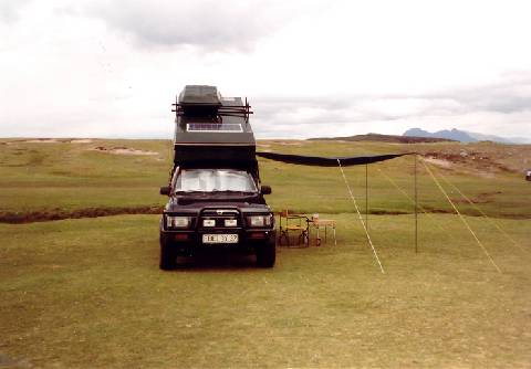 Der Campingplatz (ohne Duschen) in sehr weitläufigem Gelände ist landschaftlich so reizvoll, dass wir direkt nach der Ankunft, bereits unter der Plane sitzend, beschließen, auch den nächsten Tag hier zu verbringen - gut, dass man sich die möglichen Ruhetage aufgespart hat! Endlich ist es so, wie man es sich gewünscht hat: Landschaft pur und Sicht bis zum Horizont ...