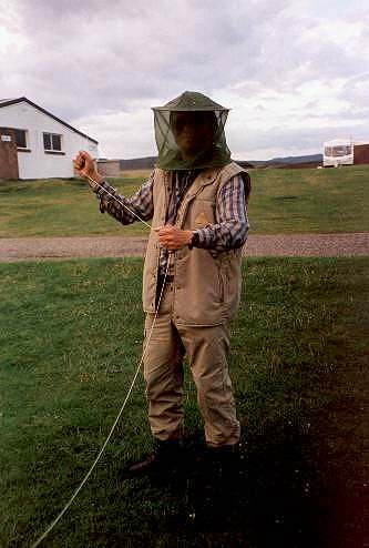 Aber: im Laufe des Abends, noch mit Delta im Himmel, flaut auch hier wieder der Wind ab. Und schon sind sie wieder da - Tausende von Midges umschwirren wie schon zuvor am Brae den Explorer. Echtes Teufelszeug sind sie, leider ist keine gigantische Paral-Sprühdose verfügbar, so dass im Laden des Campgrounds ein Kauf der günstigen Mückenhüte (für 3 GBP) angesagt ist - auch damit kann man sich draußen aufhalten, selbst wenn man sich am Anfang noch etwas albern fühlt!