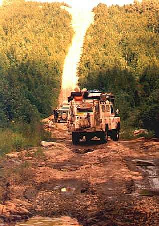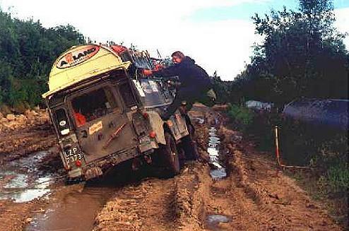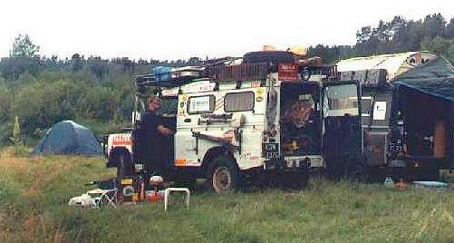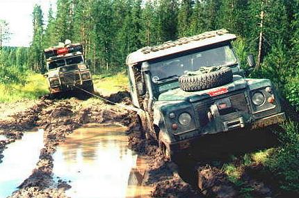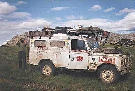 Wir fahren mit einem Land Rover 109 SIII, Baujahr 1971. Obwohl das Auto alt ist, fährt es wunderbar. Als Zusatzausrüstung haben wir dabei: Seilwinde, Sandbleche, Hi–lift, Seile und Gurte, Schäkel, Schaufel - alles ist notwendig. Einen großen Teil der Ladung, u.a. auch das Reservebenzin, packen wir auf das Dach. Wir benutzen Pirelli Scorpion A/T Reifen, die unter den sich dauernd verändernden Bedingungen sehr gut funktionieren. Wir haben zwei Ersatzräder dabei, die ebenfalls mehr als erforderlich sind ...