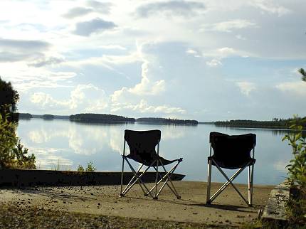 Gut erholt, entspannt und mit Pilzen vollgestopft machen wir uns auf den Weg durch das Seengebiet, von dem wir uns viel erwarten und folgen der Via Karelia nach Süden. Wahrscheinlich sind wir von der überwältigend schönen Landschaft Nord-Lapplands verwöhnt oder wir haben vom Seengebiet einfach zu viel erwartet, jedenfalls sind wir doch etwas enttäuscht: Wir sehen zwar immer wieder einmal Wasser links und rechts der Straße, meistens sehen wir aber doch nur Bäume, die als Windschutz gepflanzt wurden. Die angekündigten spektakulären Passagen auf schmalem Landgrat zwischen den Seen sind so spektakulär dann auch wieder nicht. Als Ersatz finden wir aber immer wieder schöne Stellplätze, direkt am Wasser ...