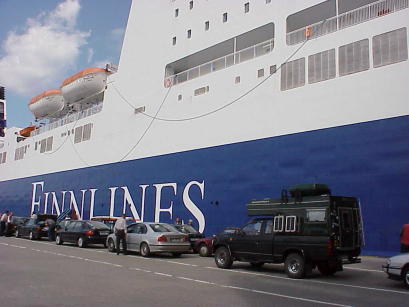 Wir erreichen die Fähre mehr als rechtzeitig - Abfahrt soll sein um 19:00 Uhr, aber die "M/S Finnclipper" der Finnlines wartet schon viel früher am Hafen von Travemünde: