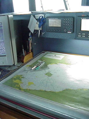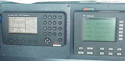 Der Finnclipper hat zwei GPS an Bord: DGPS und normales GPS (Unser Bild oben zeigt: Der Abstand zwischen beiden Koordinaten ist deutlich kleiner als 25 m!). Während ihrer Fahrten beim Irak- und Bosnien-Konflikt wurde nach Angabe unseres Gesprächspartners eindeutig an der "Selective Availability (SA)" gedreht, was sie an ihren Instrumenten beobachten konnten - wer sollte es besser wissen als diese Männer, die hier täglich unterwegs sind?