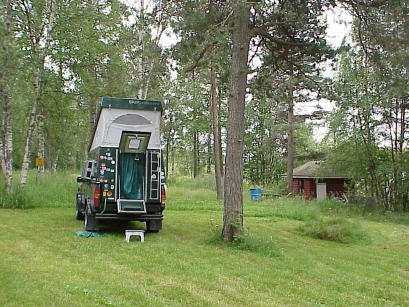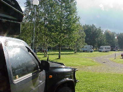 Heiß ist es heute abend, über 25°C, aber am Camp wartet der örtliche "Biergarten" mit 0,4 l Bieren (wohlschmeckend!) für kaum 10 DM - was will man mehr im Zeitalter des Spielgeldes? Nicht nur Womos in ausreichender Menge, sondern auch ganz in der Nähe unseres Biergartens: Schwimmende Finnen in der "Badeanstalt" am See - sind Finnen eigentlich die weißesten Menschen der Welt?
