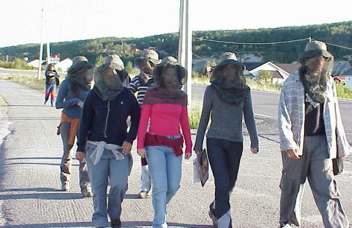 Viele Möglichkeiten für "Kleintier-Studien" ergeben sich noch in Nedre Soppero. Irgendwie scheinen alle Mücken unterschiedlich zu sein, die wir in den letzten Wochen kennen gelernt haben: Diverse Formen finden sich, angefangen von den Rüssel-Formen bis hin zu unterschiedlichem Verhalten gegenüber Autan - auch kleine Kriebelmücken finden sich ein neben großen, sogar extrem fetten. Daneben kleine, dünne - gibt es eigentlich auch gestreifte (!??)