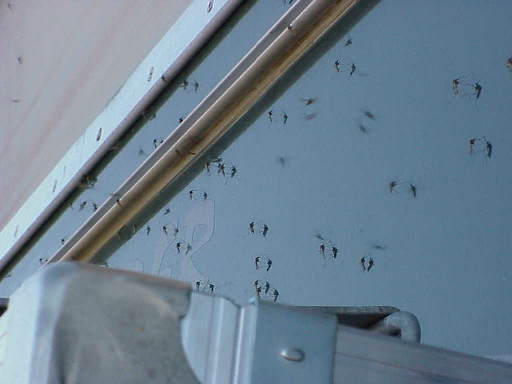 Heute Abend, nur einen Reisetag entfernt von Kiruna, sitzen wir hier also mitten in der Wildnis Nordschwedens im Explorer und können eigentlich nicht mehr raus nach unserer Rückkehr vom Spaziergang: Was sich hier draußen angesammelt hat, spottet jeder Beschreibung. Wir bleiben drin und gießen uns im Namen der Bier- und sonstigen Forschung einen ein - draußen ist es schön, idyllisch, warm - aber leider auch zunehmend lebensfeindlich!