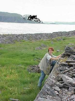 "Ein umgekipptes Boot, als Kuhstall benutzt, nimmt unsere Aufmerksamkeit in Anspruch. Am 5. Juli 1942 wurde das englische Handelsschiff "Earlston", Teil eines Konvois auf der Fahrt nach Murmansk, von deutschen Bombenflugzeugen versenkt. Elf Tage später trieb ein Rettungsboot mit 26 erschöpften und verwahrlosten Seeleuten an Land in Hollendervika. Die Ansäßigen leisteten ihnen Hilfe, mehrere von ihnen waren aber verletzt, so daß es auf Dauer unmöglich war, sie zu verstecken. Die Schiffbrüchigen wurden den Deutschen überliefert. Nach einem kurzen Aufenthalt im ´Haus der Fischer´in Gamvik wurden sie weiter nach Deutschland geschickt."