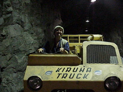 Natürlich muss man ein derart bedeutendes Bergwerk besuchen, wenn dort schon eine besondere "Info-Mine" existiert, das "Besucherbergwerk" der LKAB. Mit einem Bus geht es in rasender Fahrt auf das "540m-Niveau" unter der Erdoberfläche. Besonders wenn es oben drückend heiß ist, wie bei unserem Besuch, sind die hier unten herrschenden 10-12°C eine echte Wohltat!