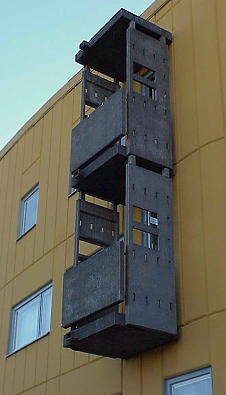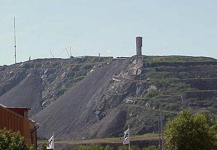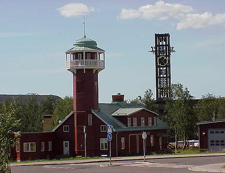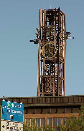 Alles in der Stadt ist auf das LKAB ausgelegt - vom Glockenturm angefangen, der 1964 zum schönsten öffentlichen Gebäude Schwedens gekürt wurde, bis zum letzten Balkon in der Stadt - alles erinnert irgend wie an das Bergwerk - so ein Zufall! Und in der Ferne immer und überall sichtbar: Die Abbauhügel mit den charakteristischen "Skip"-Türmen drauf. Die Skips selbst kann man als Besucher in der Mine hinter Spezialscheiben in ihren Schächten mit ungeheuerer Geschwindigkeit hochschießen sehen, gefüllt mit Eisenerz ...