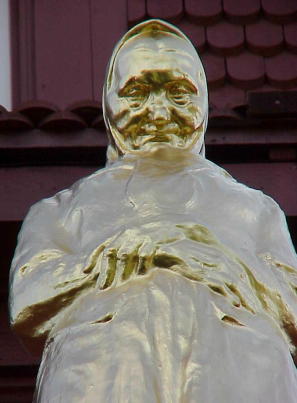Die Holzkirche: Kiruna Kyrka, 1912 von der Grubengesellschaft (von wem sonst?) gestiftet, auf ihrem Dach verschiedene vergoldete Holzfiguren, die unterschiedliche Gemütszustände darstellen sollen - hier hat man sie alle!