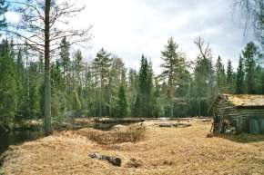 Nach etwa zwei Stunden wunderschönem Dahingleiten kam ich an den ersten ausgewiesenen Rastplatz, "Dansarbacken". Eine sehr große Gras bestandene, aber etwas buckelige Fläche mit einigen Tümpeln auf einer Halbinsel, die durch eine fast 180 Grad Kehre des Flusses entstanden war. Es gab einen Windschutz, zwei Feuerstellen und einen kleinen uralten Heuschober, an dem nun Brennholz lagerte sowie zwei Trockentoiletten und eine Mülltonne. Der Legende nach war dieser Platz in früherer Zeit ein altes Räuberlager: Das schien mir glaubhaft, denn wie einsam muss es erst vor vielleicht 200 Jahren hier gewesen sein ..?