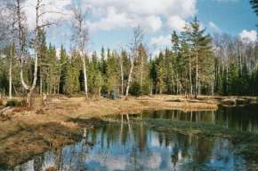 Kiefernbestandene Sandufer im Wald wechselten mit offenen Gras- bzw. Schilf bewachsenen offenen Landschaftsabschnitten, wo vorwiegend Birken und Erlen wuchsen. Zumindest da, wo die Biber nicht eingegriffen hatten: Hier war eindeutig Biberland!