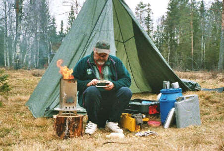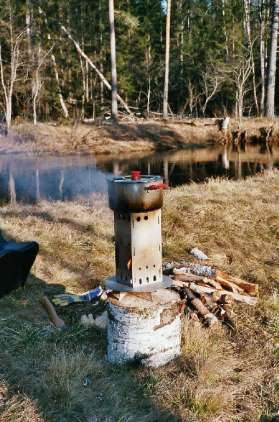 Paddeln und das Räumen und Tun in freier Natur macht halt hungrig. So sammelte ich mir auch schon einen kleinen Holzvorrat zusammen, denn auch dieses Mal kam natürlich mein kleiner Holzkocher zum Einsatz, der "Luchsfeuer"-Ofen.