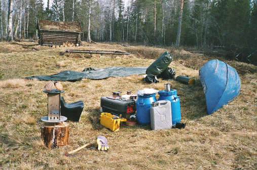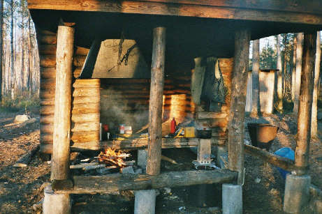 "Nittbo" lag auch recht ansprechend, mit Blick über eine weite Moorfläche, in lichtem Nadelwald, und ich war wirklich froh, endlich angekommen zu sein. Für heute hatte ich tatsächlich genug. Ich richtete mich direkt in der schnuckeligen Windschutzhütte ein. Der klare Himmel deutete auch wieder auf eine kalte Nacht hin, und da wollte ich lieber ein festes Dach über dem Kopf haben. Und wenn am nächsten Tag die Sonne wieder nicht so früh scheinen würde, gäbe es ein Problem, meine dann wieder patschnasse Zeltplane zu trocknen.