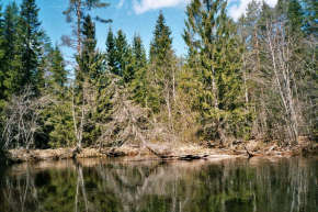 Es konnte sehr unangenehm werden, wenn einen die Strömung in, oder schlimmer noch, unter solch ein aststarrendes Hindernis zog oder drückte. Viele dieser Bäume waren schon durch Absägen der Äste entschärft worden, doch nach diesem langen Winter und dem letzten Schmelzhochwasser lagen wieder viele neu abgerutschte Bäume im Fluss ...