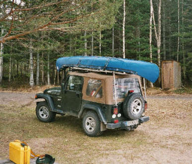 Als ich noch etwa 500 Meter von meinem Ziel entfernt war, dem Badeplatz von "Stärnfors", konnte ich schon die markante Silhouette meines Wagens am Strand erkennen.