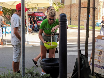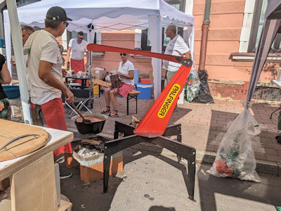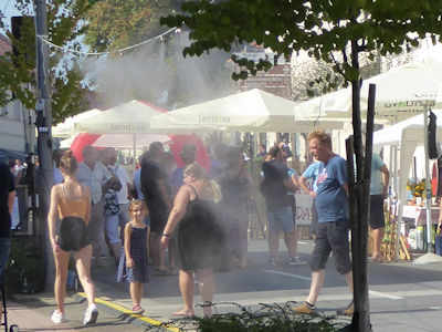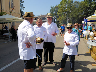 Damit aber das ganze Spektakel gut funktioniert, hat die Stadt nicht nur die Kochstände aufgebaut, sondern entlang der Straßen zahlreiche mobile Brunnen installiert, sodass es die Outdoor-Köche nicht weit zu fließendem Wasser haben. Auch Feuerlöscher stehen bereit. Über Lautsprecher ertönt Musik, denn auf einer Bühne sorgen zahlreiche Musiker für gute Stimmung. Sie wandern auch durch die Straßen und spielen auf: Plötzlich beginnen die Leute spontan dazu zu tanzen ...